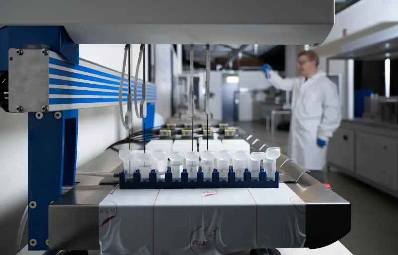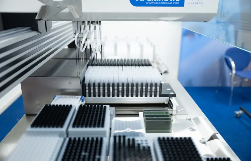 The robotic pipetting arm module encloses everything necessary to perform the liquid handling, reducing the need for space consuming external pumps and extended lengths of feed tubing. Xperimate uses a principle of positive displacement of liquid in a fluid filled system, where the aliquots of sample and reagent are automatically separated by an airgap. Xperimate can pipette using all or only some of the individual channels together, either in single aliquots or by multi-dispensing.